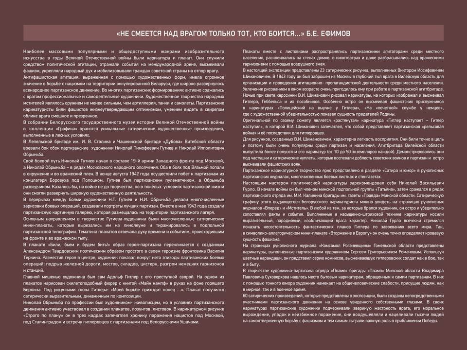 Мы знакомим посетителей нашего сайта с материалами новой выставки – «Оружие сатиры и юмора в руках народных мстителей». Выставка предоставлена нашим партнером – Московским музеем Победы на Поклонной горе, который объединил 250 музеев и военно-исторических центров России и зарубежных стран в рамках Международного проекта «Территория Победы».