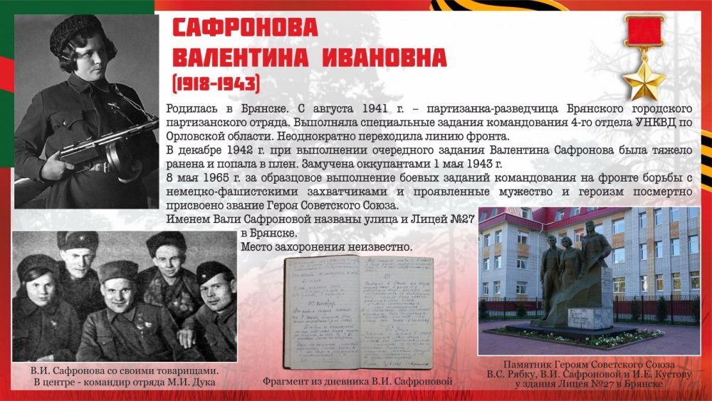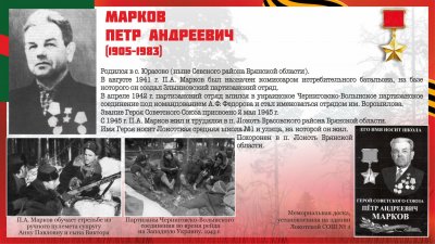 Предлагаем вашему вниманию виртуальную выставку «Партизаны Брянщины – герои Отечества», предоставленную нашим партнёром – Мемориальным комплексом «Партизанская поляна».