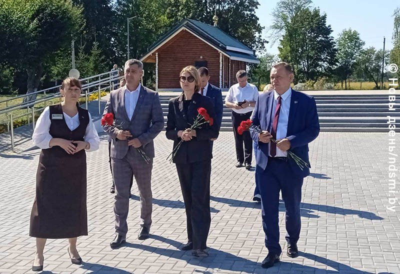 Мемориальный комплекс «Детям — жертвам войны» посетила заместитель премьер-министра Беларуси Наталья Петкевич. Она возложила цветы к скульптуре «Опаленное детство».